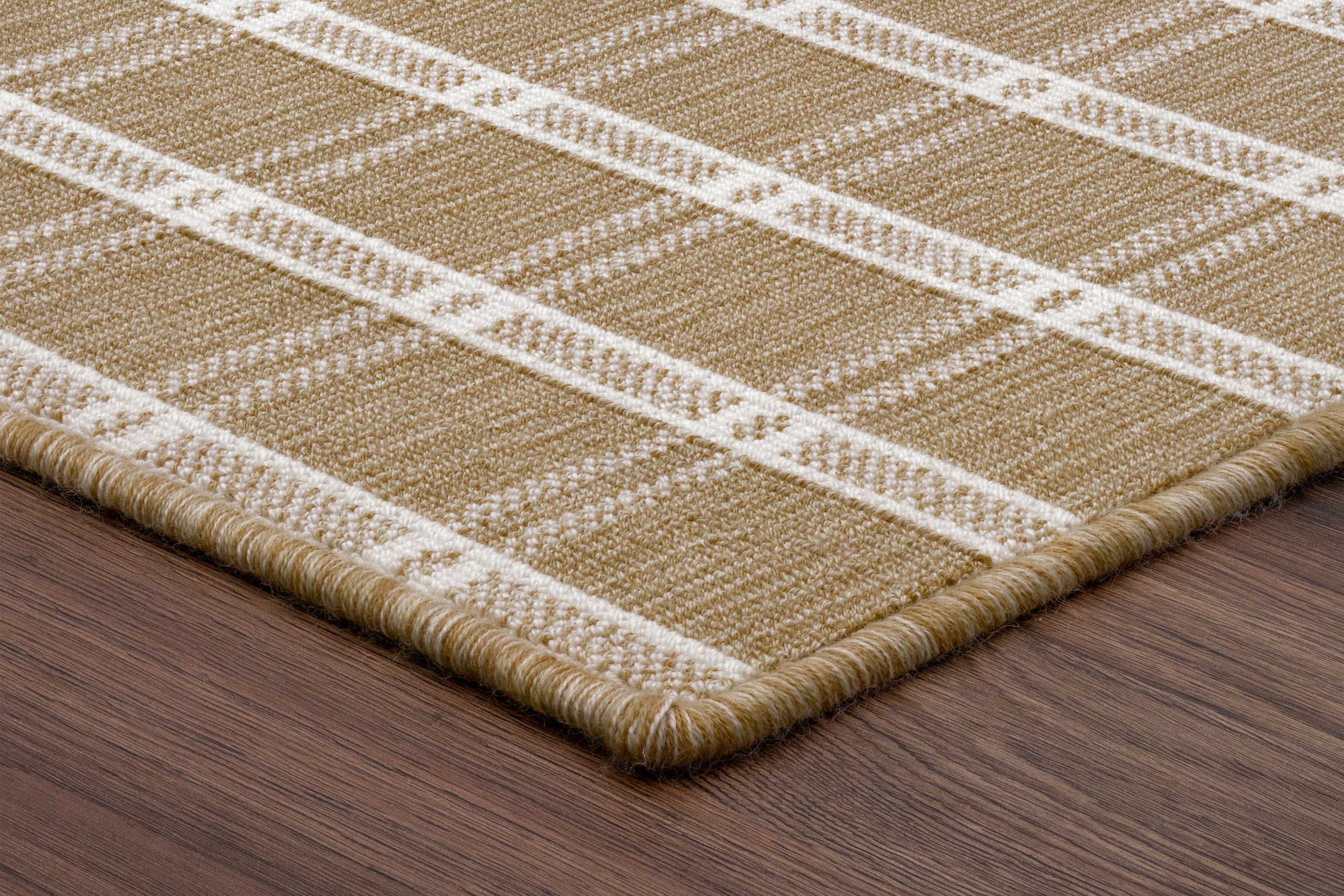 The LEWISBURG carpet by STARK is a Wilton-woven wool carpet showcasing a bold geometric pattern. Expertly crafted on jacquard looms, this style offers exceptional design versatility and intricate detail. The Wilton construction pulls selected yarns to the surface, creating dimensional loops while concealing unused colors. This technique allows for multiple pile textures and rich, layered hues, delivering both durability and visual sophistication.